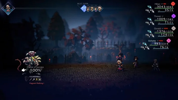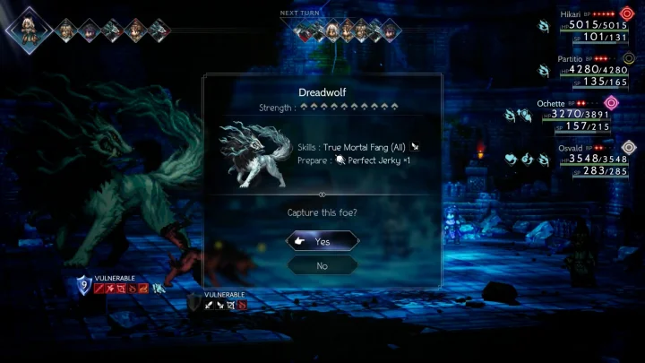 ให้สำรวจจนสุดทางแล้วจะเจอกับบอส Dreadwolf เฝ้ากล่องสมบัติอยู่ หลังจากปราบ Dreadwolf ที่เฝ้าสมบัติได้แล้ว ทีนี้มันจะกลายเป็นมอนสเตอร์หายากที่เราจะมีโอกาสจากมันได้เรื่อยๆ ภายในดันเจี้ยนแห่งนี้ เมื่อเจอมันอีกครั้งคราวนี้โอชุตต์จะสามารถจับมันมาร่วมทีมได้แบบปกติแล้ว สำหรับสกิลของ Dradwolf นั้นค่อนข้างทรงพลังเพราะจะโจมตีด้วยมีดเป็นจำนวน 4 ครั้งแก่ศัตรูทุกตัว พร้อมด้วยลดพลังป้องกันกายภายและความเร็วลง 8 เทิร์น แต่การใช้งานจะมีเงื่อนไขเดียวกับ Light Revenant ก็คือต้อง Boost 3 เกจ และสามารถใช้ได้เพียง 1 ครั้งในการต่อสู้