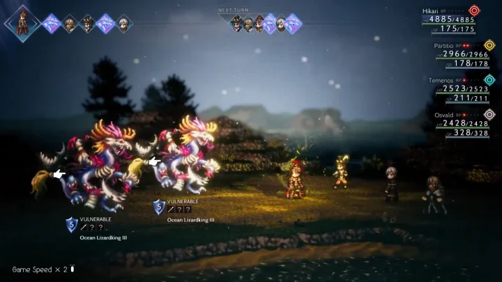 สำหรับจระเข้ยักษ์ตัวนี้ก็อยู่ในถ้ำ Cavern of Waves เช่นเดียวกัน สกิลของมันจะโจมตีด้วยมีดแก่ศัตรูทุกตัวได้รุนแรง และยังเพิ่มบัฟพลังโจมตีกายภาพให้ทีมเราอีก 2 เทิร์นด้วย