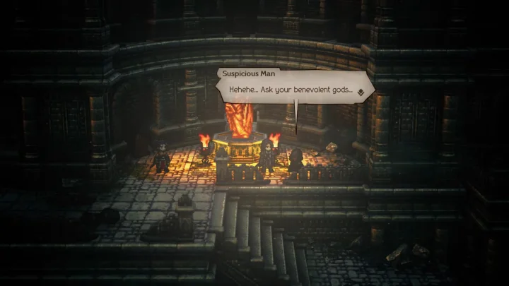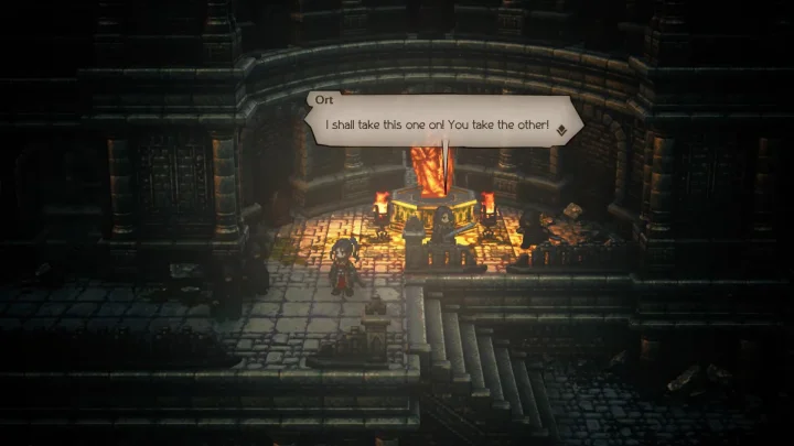 ทีนี้ก็ให้เราเดินไปบริเวณขวาบน เราจะได้พบกับออร์ต และบริเวณนั้นก็มีชายที่น่าสงสัย 2 คนในชุดคลุมสีดำ ชายทั้งสองนั้นก็ได้คุยกันว่าตอนนี้คือโอกาสที่ดีแล้ว หากใครที่ผ่านลงไปยังทางใต้ดินจะต้องเจอพวกเขาจัดการในนามของนายท่าน ออร์ตก็คุยกับเราว่า พวกเขาเป็นใครกันนะมีท่าทางที่น่าสงสัยและดูเหมือนกำลังตามล่าอะไรบางอย่างอยู่ วิธีการเดียวที่จะรู้ก็คือเข้าไปดูว่าพวกเขาทำอะไรกันแน่ แต่ก็อย่าทำให้เกิดความวุ่นวายมากเกินไป
