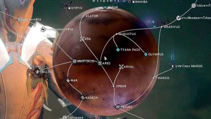 ทีนี้ก็ให้เปิดแผนที่ไปที่ดาวอังคาร จะเห็นว่ามีจุดที่เป็นภารกิจนี้อยู่หลายจุดด้วยกันเลย ซึ่งจะแสดงเป็นสัญลักษณ์พิเศษที่มีภารกิจนั่นเอง
