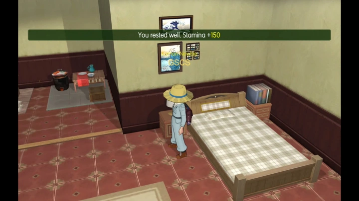 – นอนบนเตียงที่บ้าน ได้ 150 หน่วย ทำได้วันละ 1 ครั้ง (เตียงได้จากเควสที่ให้ซ่อมระเบียงแล้วเปลี่ยนสกินบ้านเป็นสไตล์ญี่ปุ่น หลังจากจบ Event ฉลองขึ้นบ้านใหม่แล้ว ให้คุยกับ Shimaga จะได้เตียงมา ก็ไปติดตั้งในบ้านแล้วกดนอนได้เลย)