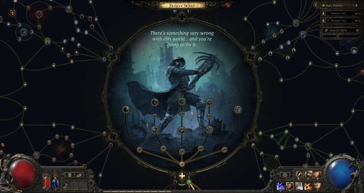 ตัวเกมในช่วง Early Access นี้จะมีให้เลือกทั้งหมด 6 อาชีพด้วยกัน และแต่ละอาชีพจะสามารถเลื่อนขั้นอาชีพแยกย่อยไปได้อีก 2 อย่าง การเลือกอาชีพไม่ใช่ข้อจำกัด แต่เป็นแนวทางในการปั้นตัวละคร เพราะสามารถเลือกใช้สกิลของอาชีพไหนก็ได้ ขอแค่ค่า Stat ของเราถึงแต้มที่กำหนดไว้ก็พอ และที่สำคัญก็คือภายในเกมจะมีสิ่งที่เรียกว่า Passive Tree เป็นรากฐานเพิ่มความสามารถให้กับตัวละครของเรา แต่ละจุดที่อัพลงไปก็จะเพิ่มความสามารถต่างๆ ให้กับตัวละคร ซึ่งเราจะได้รับแต้มการอัพ Passive Tree นี้มาทุกครั้งที่เลเวลอัพ หรือผ่านภารกิจบางอย่าง โดยตัว Passive Tree นี้จะมีขนาดใหญ่มาก มีจุดให้เลือกอัพมากกว่า 1,500 จุดด้วยกัน แต่เราจะสามารถอัพได้สูงสุดที่ 122 แต้ม ทำให้เกิดความหลากหลายให้การสร้างตัวละคร 1 ตัวขึ้นมา